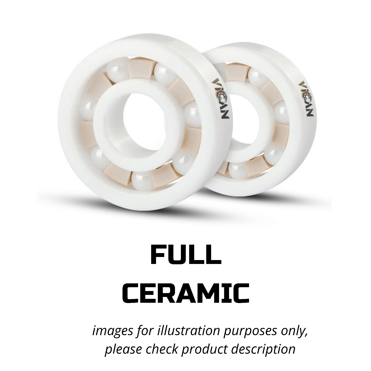 Ceramic is a polymer with a surface similar to glass and has extremely low coefficients of friction and expansion compared to steel, which makes this type of bearing the ideal choice for those looking for friction reduction and heat resistance. In the case of “Full Ceramic” VICANs, there are two types of polymers in their structure: